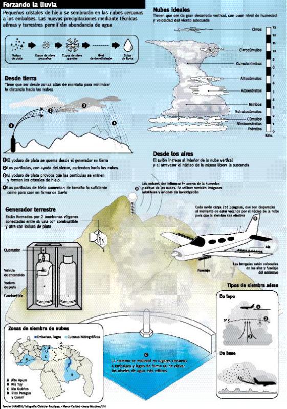 21 junio 2014 - El Gobierno Bolivariano prevé activar el mecanismo de “siembra o bombardeo” de nubes para provocar la lluvia, con el apoyo de Cuba, ante la grave situación de sequía que enfrenta al igual que otras naciones del norte de Suramérica.